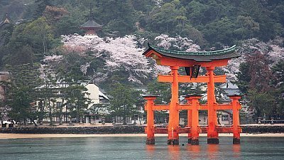 The cherry blossom (, sakura) is Japan's unofficial national flower. It has been celebrated for many centuries and holds a prominent position in Japanese culture. There are dozens of cherry tree varieties in Japan, most of which bloom for just a few days in spring. The seasonal spectacle is celebrated with hanami (cherry blossom viewing) parties under the trees.