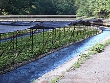 Wasabi (ワサビ or 山葵) is a root vegetable known in English as Japanese horseradish. It is most famous in the grated form of a green paste used as condiment for sashimi (raw seafood) and sushi. However, wasabi is also used for many other Japanese dishes. In supermarkets, wasabi is available as a paste or in powder form. Wasabi powder has to be mixed with water to become a paste. Wasabi has a strong, hot flavor which dissipates within a few seconds and leaves no burning aftertaste in one's mouth.