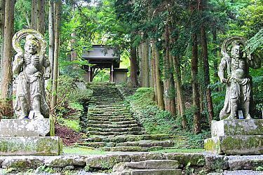 The Kunisaki Peninsula (, Kunisaki Hantō) is situated in northern Oita Prefecture, facing the Seto Inland Sea. It has a number of valleys radiating from Mount Futago at its center. Mostly covered by forests and sparsely populated farmlands, the peninsula is dotted with temples of various stature, from the important Futagoji Temple and celebrated Fukiji Temple to less prominent, small and rustic ones.