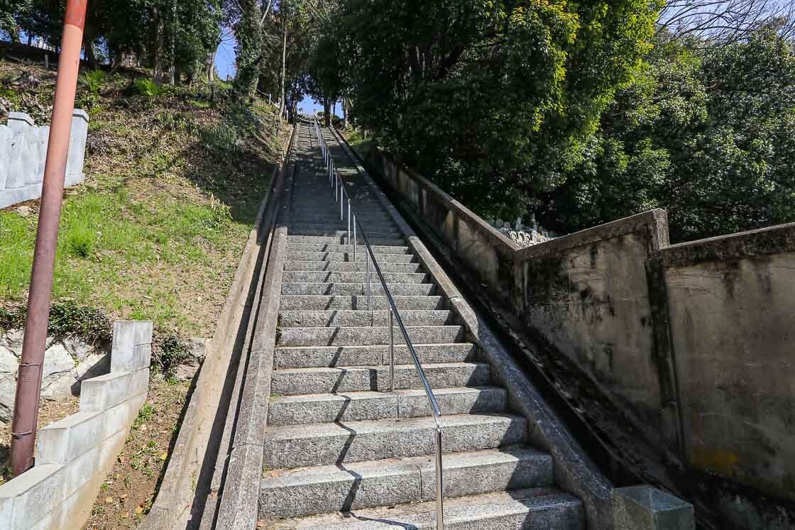 Otokoyama Haisuiike Park sits atop Otokoyama, a 57.5 meter tall mountain in Himeji City. The park is accessed by a relatively steep flight of approximately 200 steps up the side of the mountain. Due to the elevation of the park, visitors to the park are rewarded with almost eye-level views of Himeji Castle. Additionally, two shrines are located halfway up the mountain and one at the base.