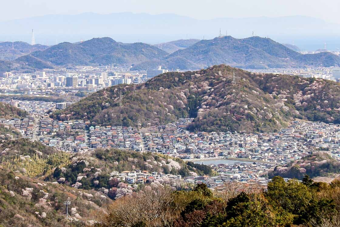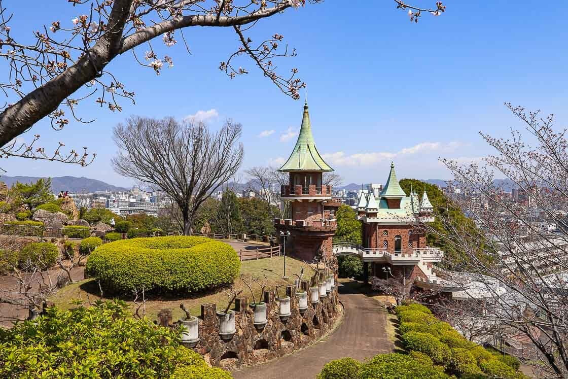 Keifukuji Park is a quiet park on a hill in Himeji City. The park is southwest of Himeji Castle and looks across Kokoen Garden, a Japanese garden next to the castle.
