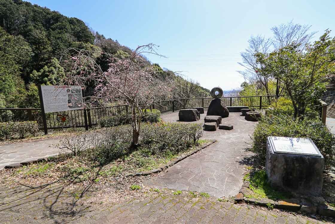 Masuiyama Pocket Park is about 3.5 kilometers north of Himeji Castle and located about halfway up Mount Masuiyama, an approximately 260 meter tall mountain. Masuiyama and Himeji Castle are related to each other by their stones, in which tuff - a type of rock made of volcanic ash - from Masuiyama was used to built the stone walls. Rocks from Masuiyama can be found at the small park, and Himeji Castle can be seen in the distance when the weather is clear.