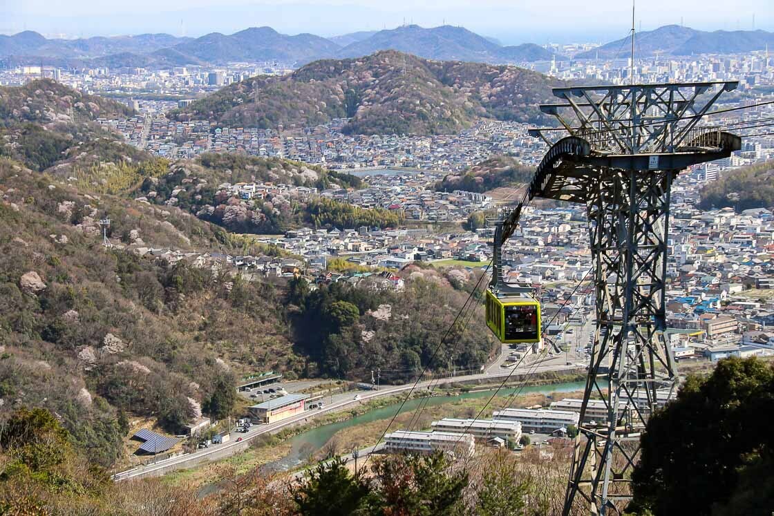 Mount Shosha is home to Engyoji Temple, an atmospheric mountain temple complex, that is said to be the Enryakuji - a famous mountain temple complex in Kyoto - of the west. Many buildings make up Engyoji Temple, and the main ones not to be missed are the centrally located wooden Maniden hall and the Mitsunodo, a set of three wooden buildings about 5-10 minutes on foot from the Maniden. The temple complex on the mountaintop can be accessed by ropeway, which takes less than four minutes to ascend the mountain. Note that while Himeji Castle can be seen from the observation point at Mount Shosha, it is extremely small and easy to miss.