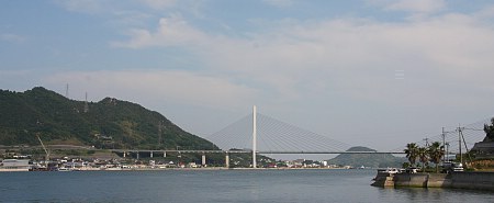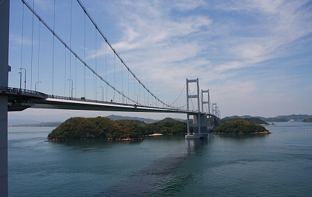 The Shimanami Kaido is about 70 kilometers long, and includes six bridges. Many of the more memorable moments from the trip were on the bridges, when I took a break from pedaling and looked out over the water and the surrounding view. The weather had luckily been just about perfect and the sky and water were a beautiful blue. The bridges had wide and smooth bike lanes apart from the road. Except for one bridge, the bike lanes along the bridges were only slightly enclosed, which made biking along them quite pleasant.