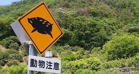 Once the bike routes reached the islands, they would usually divert from the expressway. The bike route would then wind through the small towns that occupy the islands. On one of the islands I stopped for a while to watch a hawk. And though warning signs alerted me to the presence of wild boar, I unfortunately did not have the opportunity to see any.