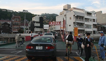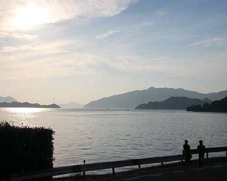 The biking was easier now that the sun wasn't so strong, and it was interesting to see the way that the scenery looked at dusk compared to how it had looked at midday. With the sun getting low, I reached the last island before Honshu, Mukaishima Island, passing a number of fisherman by the side of the road. The official bike route of the Shimanami Kaido does not pass over the last bridge connecting to Honshu, and although it is traversable by bike I had noticed on the bus in the morning that it did not seem very pleasant. So, I finished the day by taking a ferry from the last island back to Onomichi, and Honshu.