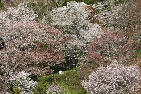 Yoshino is one of my favourite cherry blossom spots in Japan. A mountainside covered with 30,000 cherry trees provides an interesting contrast to the parks and riversides that usually serve as the setting for the season's hanami parties. Because the cherry trees are spread out over different elevations, Yoshino has one of the longest periods when it is possible to find flowers at full bloom. This year I was able to catch the cherry blossom peak in the lower Shimo Senbon area on the April 6, 2010 Cherry Blossom Report.
