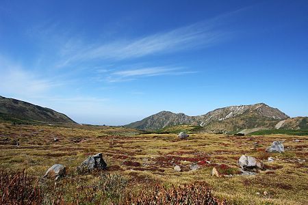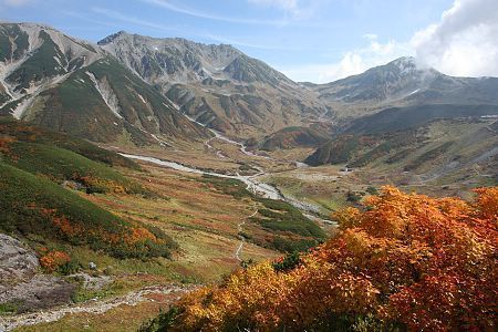 Since Murodo is already above the tree line, the autumn colors are mainly provided by mountain bushes and grass. They are now at their peak.