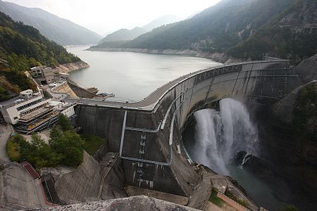 The journey along the Alpen Route is an attraction in itself and includes rides by trolley buses, regular bus, cablecars and a ropeway. At 9am, we boarded the trolley bus from Ogizawa to the first stop, Kurobe Dam. We seemed to have hit the rush of tour groups from Tokyo, and were surprised by the route's popularity even on a weekday (although they disappeared later). We certainly recommend to avoid traveling along the route on weekends.