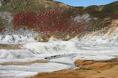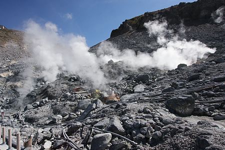 A highlight of Murodo is Jigokudani, or hell valley, which is an active volcanic area venting sulfurous gas and steam. Numerous hot springs surface in the area. providing nearby bathing facilities with hot water.