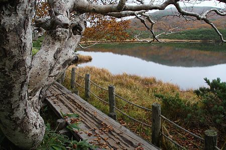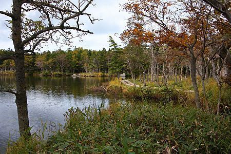 The trail starts from near the height of Shiretoko Pass and leads for three kilometers through valleys, over hills, across marshlands and past five ponds to Lake Rausu, an unspoilt mountain lake surrounded by some peaks of the Shiretoko mountain range.