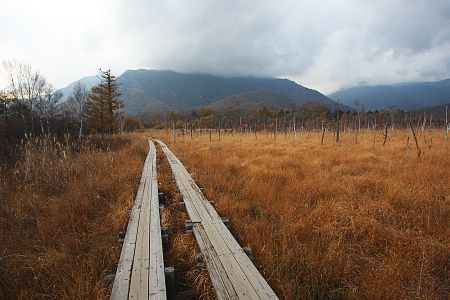 From the Ryuzu Falls, we followed the hiking trail through the Senjogahara Marshlands, one of my favorite hiking courses. While many trees in the marshlands were already barren, larch trees and grasslands turned the scenery beautifully golden.