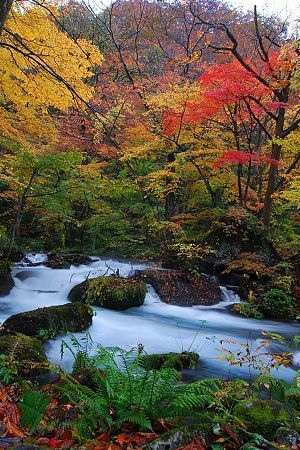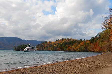 We started the day by taking a sightseeing cruise on the lake which followed the shore around two peninsula which jut out into the lake. We were fortunate with our timing as most of the trees were colored red, yellow and orange. The cruise ended at Nenokuchi village which is where the Oirase Stream begins.