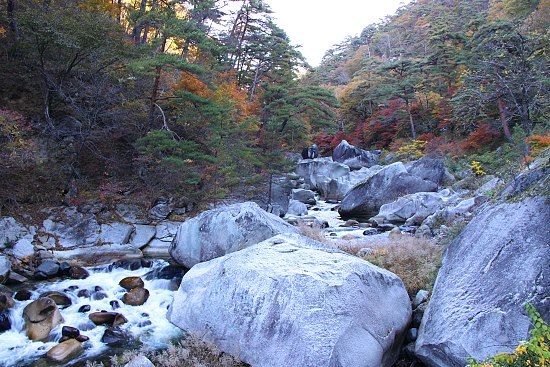Shosenkyo Gorge in Yamanashi Prefecture is considered one of Japan's most beautiful gorges, offering great natural scenery consisting of landscapes with cliffs and many interestingly shaped rocks, a nature trail which runs along Arakawa River in the valley, and the famous view of Kakuenpo Peak.