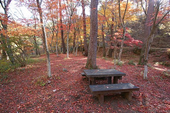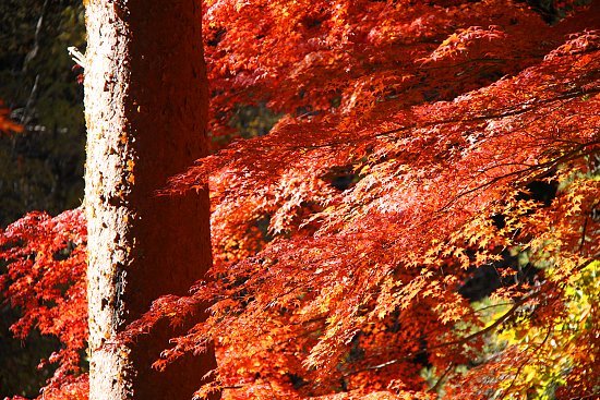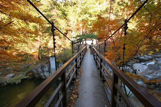 Autumn colors were not fantastic from the entrance of the gorge up till about one-thirds into the hike, when some nice autumn foliage and a carpet of red fallen leaves decorated the Tenkorin Forest (the size of it was more like a garden though). Walking on, I spotted more colors around Rakanji Temple and the small bridge that leads to it.