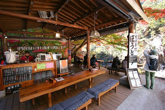 Today I took a bus from Kofu (Yamanashi's capital city) to the foot of the gorge, from where I started a four-kilometer gentle hike up to the Sengataki Waterfall, passing by Kakuenpo Peak along the way. Just above the waterfall was a small town of restaurants and shops, mostly selling souvenirs and gifts made of crystal and precious rocks, which seemed to be the local specialty.