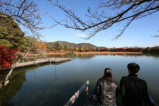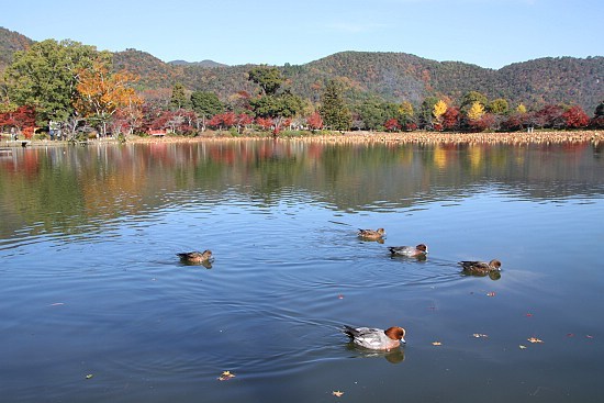 I visited Daikakuji Temple next, which is popular for its photogenic Osawa Pond and Shingyo Pagoda. The temple compound had many maple trees, and today I found most of them to be of a darker velvet red; beautiful, but perhaps signaling that many trees will start shedding more leaves before long. Currently, more than 1000 windmills are placed around the large pond and the pagoda, which added to the beautiful scenery.