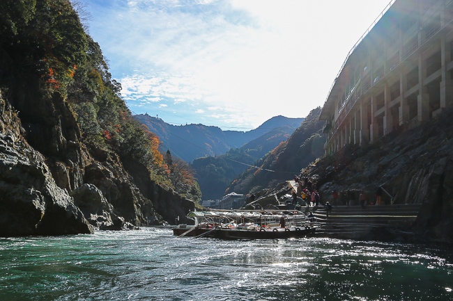 I first headed into the Oboke Gorge where I joined a sightseeing cruise along the Yoshino River and fell in love with the view (the sunny weather and blue skies helped as well). The cruise took about 30 minutes, and all passengers had to remove their shoes and wear life jackets. The boatman gave a brief introduction of the gorge and the cruise in Japanese, and I was given an English brochure which outlined the same content. The boat was equipped with heated tables and blankets, and my legs were warm and toasty despite the chilly temperature. The Yoshino River was very clear, allowing us to spot some huge koi fish along the way.