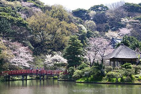 Sankeien is a Japanese landscape garden with a central pond, various historical buildings moved there from across the country, and several hundred cherry trees.