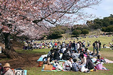 The trees in Negishi Forest Park have not yet reached the 50 percent mark and need several more days to reach full bloom. But they already make for an impressive sight and attract a lot of visitors.