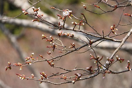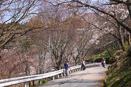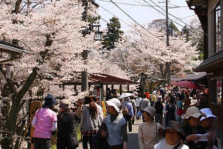 In the mountain's lower and middle areas (Shimo Senbon and Naka Senbon), full bloom has been reached, and blizzards of falling petals (hanafubuki) already occur here and there. In the upper area (Kami Senbon), many trees are also in full bloom already, except a considerable number of cherry trees of a different variety, which are still in buds and only just about to open.