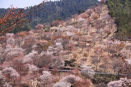 Yoshinoyama (Mount Yoshino) is Japan's most celebrated cherry blossom spot, an important center of mountain worship and a UNESCO world heritage site. The mountain is covered by approximately 30,000 cherry trees.