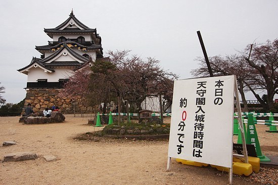 Hikone's cherry blossoms follow a blooming schedule that is surprisingly delayed compared to nearby Kyoto. The trees were reported to have opened only four days ago on April 1, and today were in general around the 20-30 percent mark. Full bloom should be reached around the weekend.