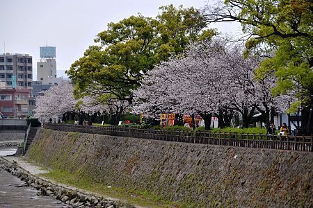 The Kotsukigawa River runs through central Kagoshima City. Just a short walk from Kagoshima Chuo Station, there are 500 cherry trees planted along the banks of the river.