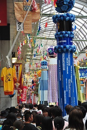 Taking place between August 5th and 8th, the Sendai Tanabata begins with a fireworks display, and has the usual events such as live shows, food stalls, and performances held around town. But the central feature of this festival can be found along the city's two main shopping arcades, where large paper decorations hang from more than 1500 bamboo poles which span across the street.
