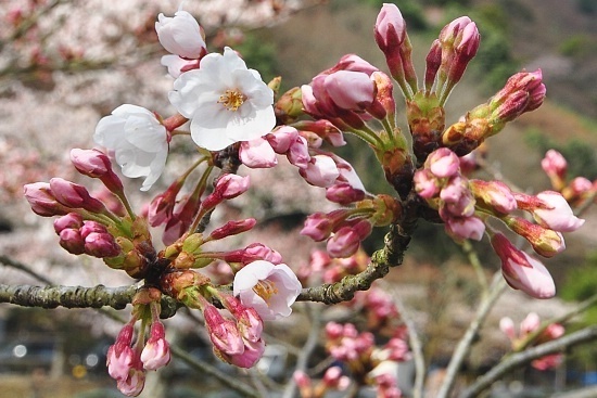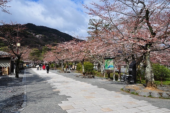 It was another cold day today, and when I arrived in Arashiyama this morning I could see patches of snow here and there along the street. Not surprisingly, the trees along the river have been progressing slower than usual, and are still only about thirty to forty percent open. Compare this to seven days ago when the trees had less than ten percent of their blossoms open.