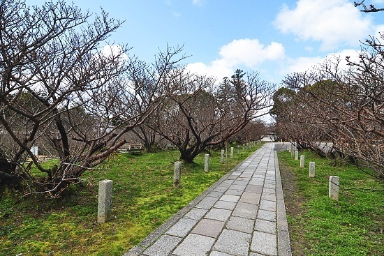Ninnaji Temple is best known, however, for its rare, Omuro cherry trees which are named for the sect of Buddhism of which Ninnaji Temple is the headquarters. Omuro cherry trees grow low to the ground, almost like bushes, and are a rather late blooming variety of cherry. As of today their blossoms are still wrapped tightly and don't look like they will be opening for some time. Once they open the temple sets up benches among the trees where you can sit and enjoy some refreshments while viewing the blossoms.