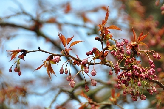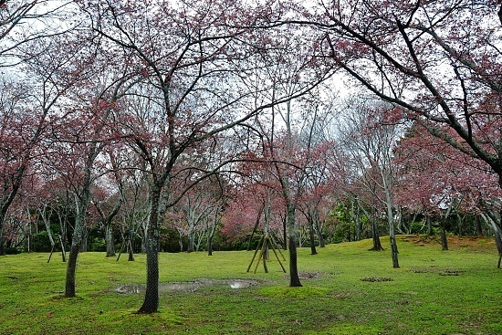 Nara Kokonoe Zakura, a variety of cherry blossom local to Nara, are scattered around the park and can be found in large numbers on the eastern side of the grounds that lie between Nara Park and Wakakusayama. These late blooming trees are only just beginning to open.