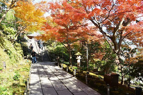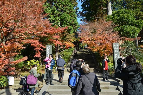 Probably due to the higher elevations of the park, the autumn foliage around Genjiyama was much closer to the peak than the rest of Kamakura today. Many of the maples were showing nice colors, while a few trees were already starting to drop their leaves.