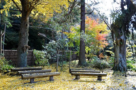 From Genjiyama the trails lead down the mountains to Jochiji Temple, the fourth of Kamakura's five great Zen Temples. Several maple and ginkgo trees are scattered around the temple grounds, and while the ginkgoes looked close to peak, the maples appear to be a bit later than the other places that I visited today. Many of the trees were only just beginning to change colors.