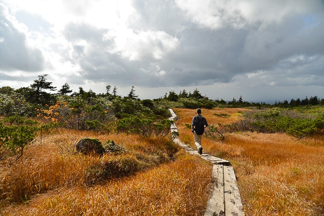 A highland area extends around the upper ropeway station and can be explored along a small network of boardwalk nature trails which have been arranged into 30 and 60 minutes long hiking circuits. Unfortunately, most of the colors have already disappeared from the area except for some colorful grasses in the marshy spots.