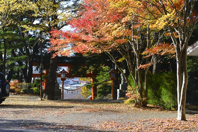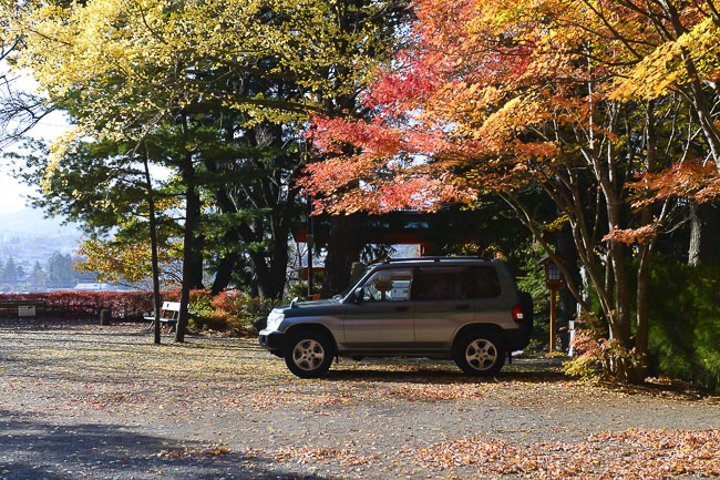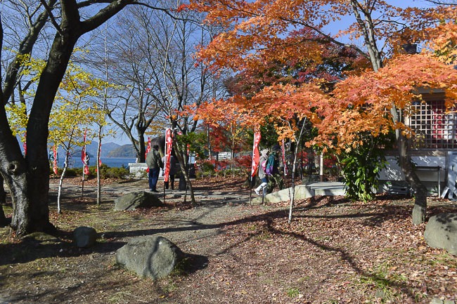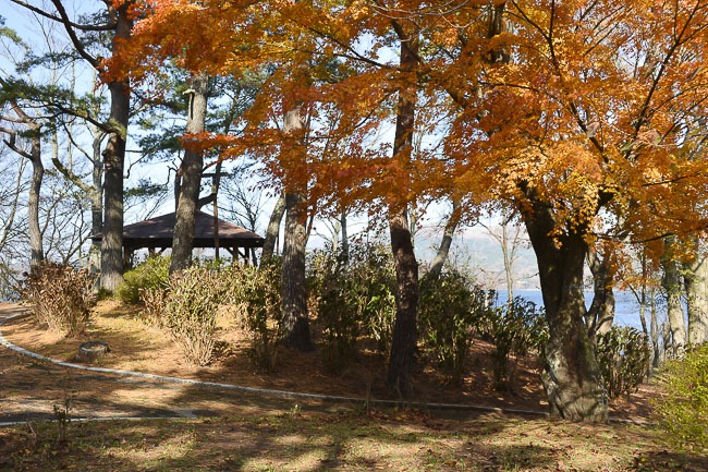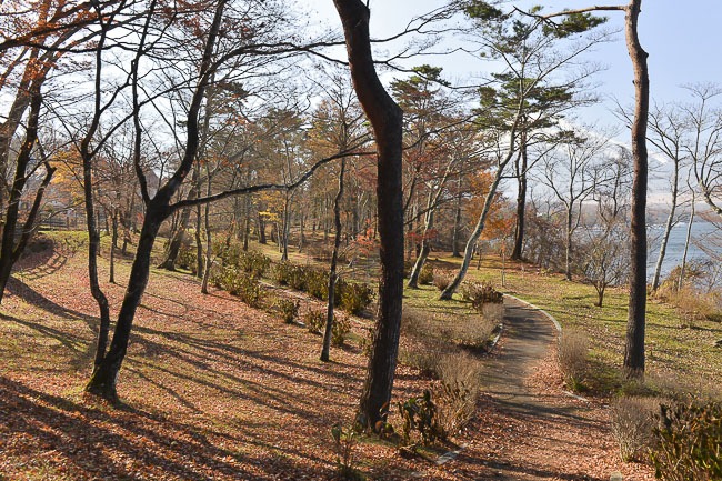 Finally I paid a quick visit to Yuyake no Nagisa Park along the southern shore of Lake Yamanakako. The koyo around the park is pretty much finished and most of the trees pretty bare. There were only a few maples left scattered around the park that still had any leaves, and even the late season larch trees were starting to thin out.