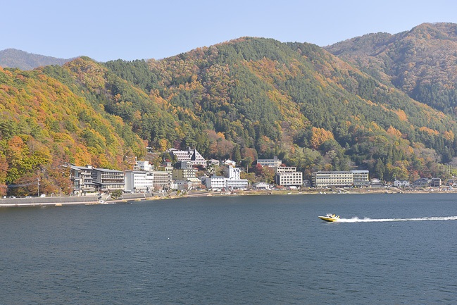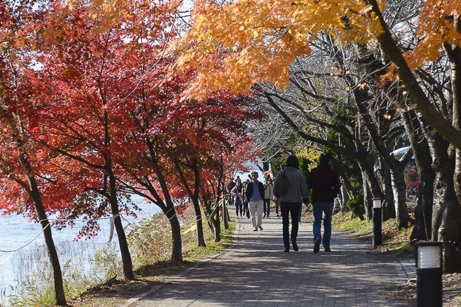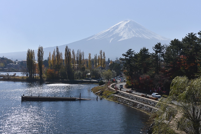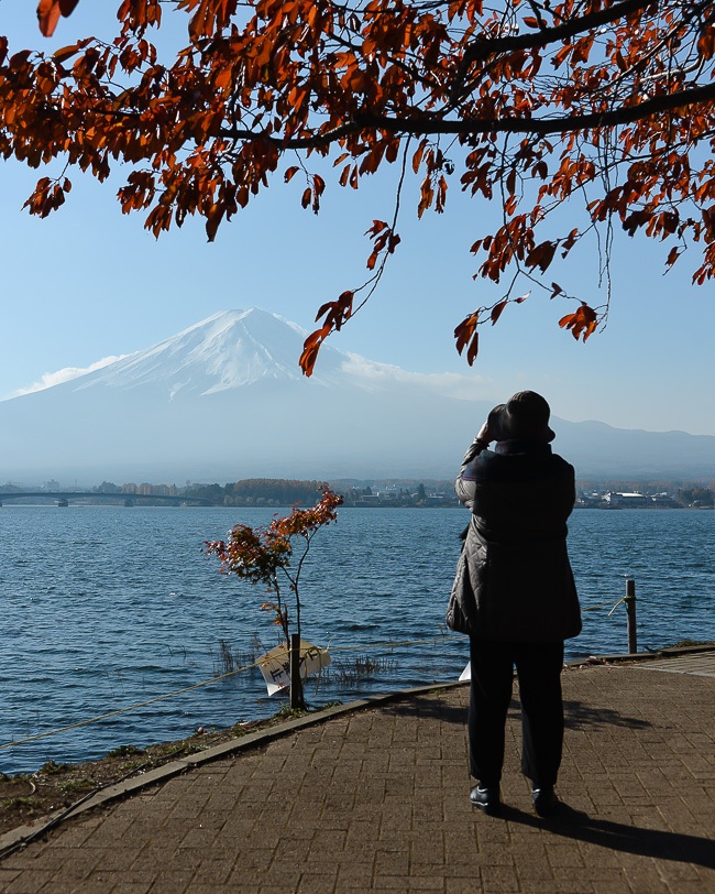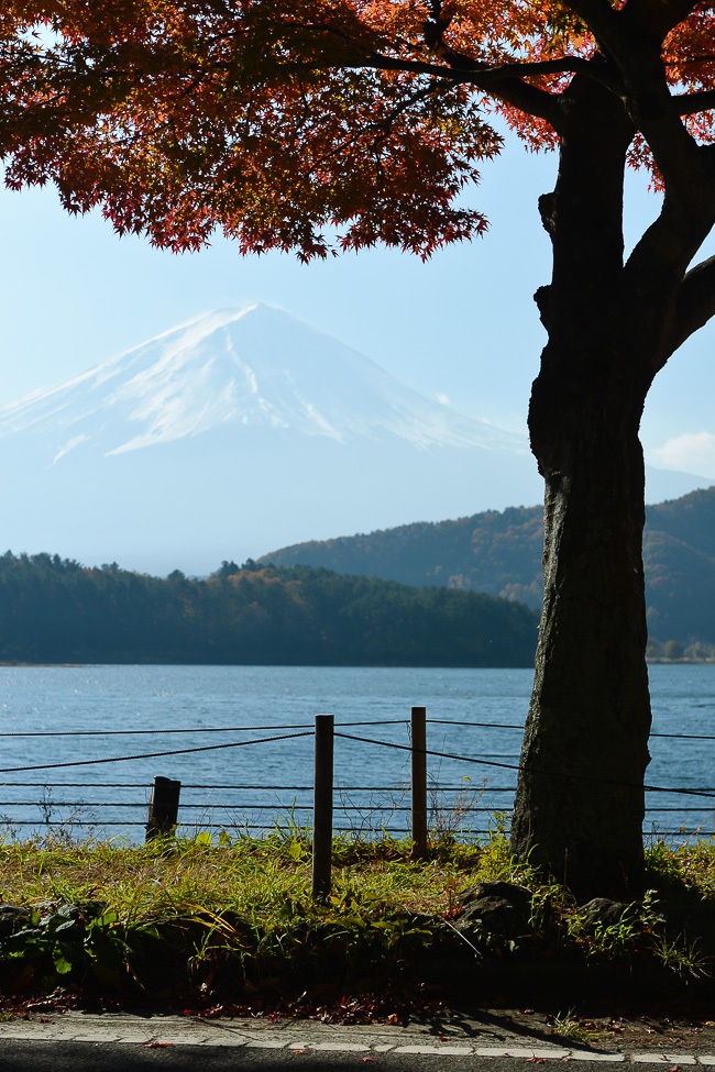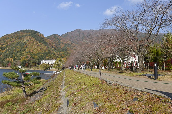 After visiting the Chureito Pagoda I drove over to the northern shore of Lake Kawaguchiko to check out the area that we usually visit during our cherry blossom reporting. The rows of cherry trees that line the shore were again pretty bare, but the maple trees were still around their peak.