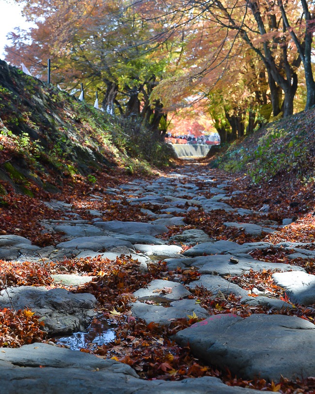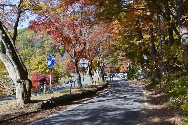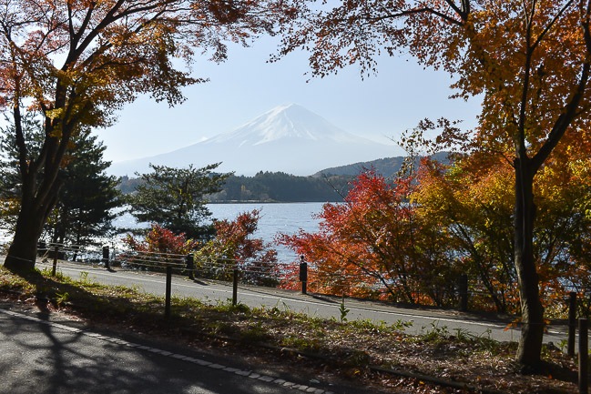 Next I continued making my way around the lake until I got to the Koyo Tunnel, where the maples tend to peak a little bit later than the other parts of Lake Kawaguchiko. The situation has really improved since last week. The colors were just around the peak this morning and should remain a nice spot to visit for perhaps another week.