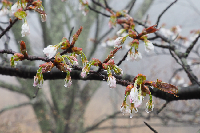 The cherry blossoms in this area typically open first so are usually the most advanced on the mountain. This year they opened on April 1st and were reported to reach full bloom yesterday. Though when I first saw the trees I thought that the petals were already beginning to fall, I think that can be attributed to the rainy weather as it is still a little too early for the petals to be dropping and I'd fully expect it to remain nice on the mountain through the week.