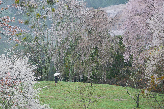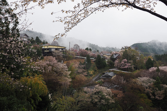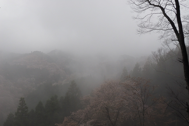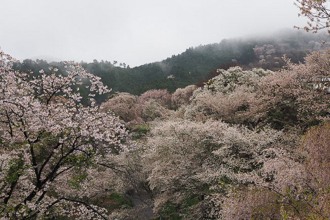 The Kami Senbon area towards the top of the mountain provide the best views of the cherry tree covered slopes below, with the most famous panoramic views from the Hanayagura Viewpoint about 5 kilometers up the mountain. Unfortunately the fog was really thick and obscured the view for most of the time I was there.