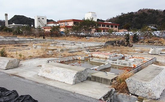 It's the second day of our Iwaki trip and we started off heading towards the coast in the direction of the Shioyasaki Lighthouse. Unfortunately, the lighthouse was still undergoing repair works due to last year's earthquake and was not open for entry. Our second destination, the Shiramizu Amidado temple hall, was also closed due to repair works (until July 10). Iwaki was, although less affected than places further north, still hit pretty badly by both the earthquake and the tsunami. Along the coast, we spotted a strip of land with only the remaining foundations of houses.