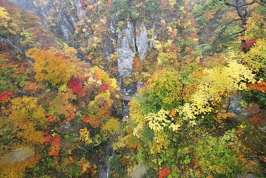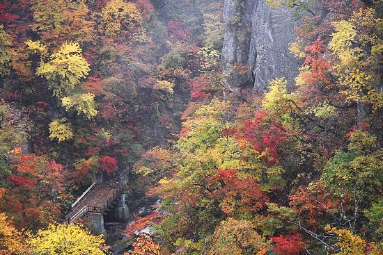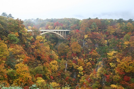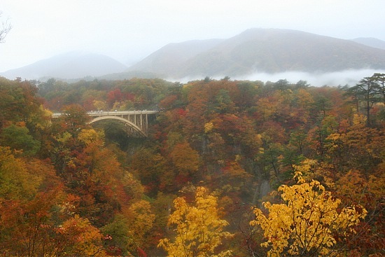Naruko Gorge is one of the most well-known autumn color spots in the Tohoku region. It can be reached in a twenty minute walk from Nakayamadaira Onsen Station, which is a two hour train ride from Sendai, the biggest city in the region.