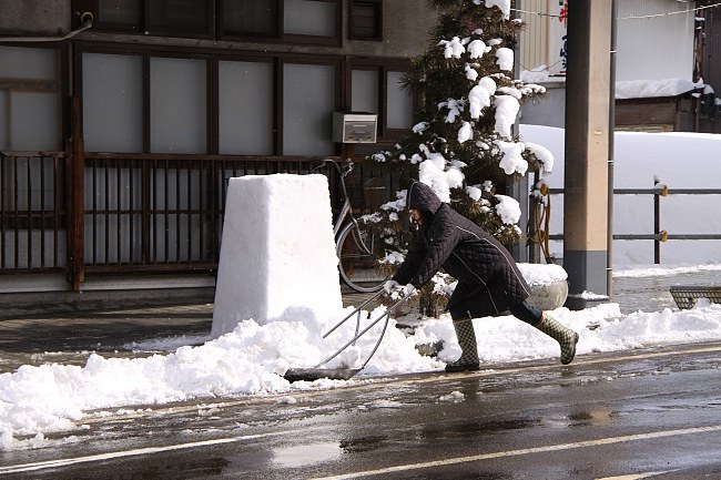 I have fond memories of Tokamachi because I had a great time during my last visit for the Echigo Tsumari Art Triennale. Today, I visited the city again and saw a totally different landscape from what I had seen last summer: Tokamachi experiences one of the highest snowfall rates in Japan, usually accumulating snow of depths two to three meters. Sources reveal that the snow depth of the day was about 240 centimeters.
