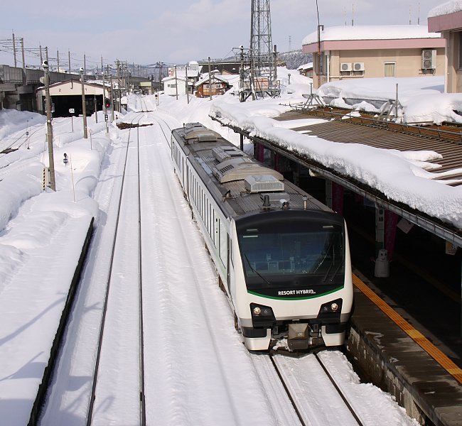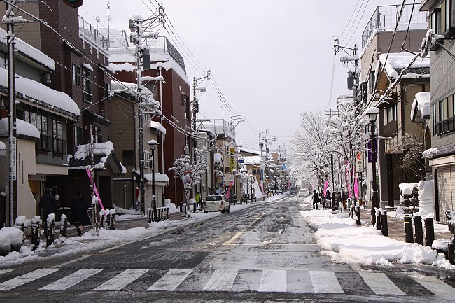 Lady luck granted us fair weather today. As our train approached Tokamachi Station, I was delighted by the gorgeous scenery outside: hills with frost covered trees, houses with seemingly new white roofs installed specially to celebrate the season, and cute automobiles moving gingerly on the streets as if they were afraid that the snow which they have accumulated on them might fall off.