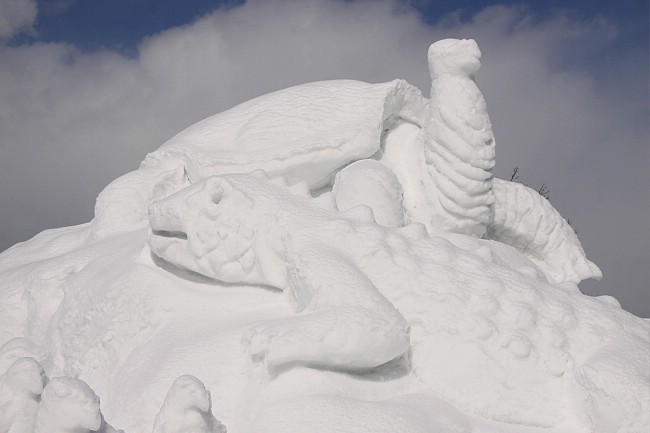 Many snow sculptures were exhibited at various sites, some further away from the city center while others grouped into clusters located downtown. At one of the larger sites, the Community Hiroba, lots of other activities were taking place: people were playing volley ball in the snow, enjoying festival food and going down snow slides. Schauwecker and I thoroughly enjoyed the Tokamachi Snow Festival, especially as the rural setting provided the perfect backdrop for picturesque scenes. Maybe I have an affinity with Tokamachi, which never fails to provide me with lovely memories every time I visit.
