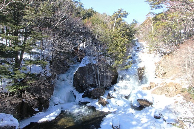 Following that, we headed to the great Kegon Waterfall, which was as always cascading down mightily. Some parts of the waterfall close to the base were frozen, lending the scene a pretty bluish tint. We also visited Ryuzu Waterfall, which had comparatively more frozen sections, giving it an appearance much varied from that which we usually see in autumn.