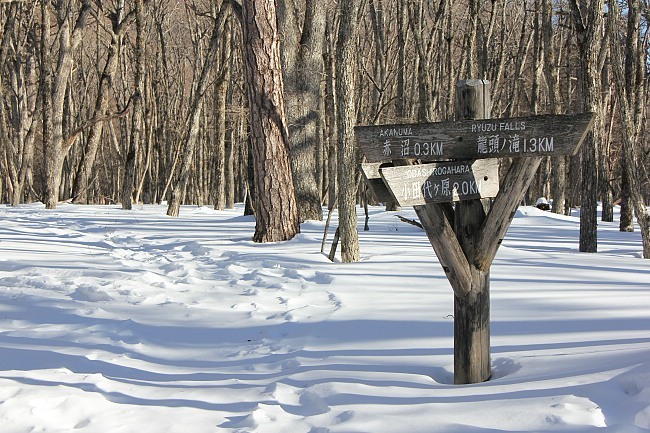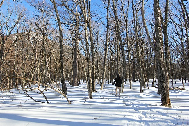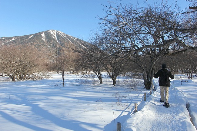 Finally, it was time for the highlight of the day: snowshoe trekking in the Senjogahara Marshland. It was fun, albeit slightly cumbersome, to walk across the fields of snow with the snow shoes. We caught some nice winter views of the woods and Senjogahara with Mount Nantai in the background.