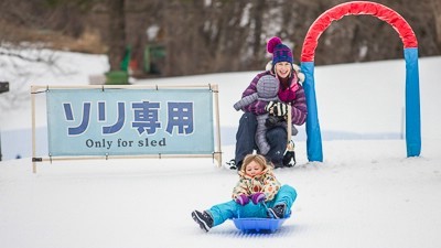 Tambara Lavender Park is actually Tambara Ski Park in the winter, but as the snow melts from the slopes, it reveals a plethora of lavender plants just waiting for the spring rain and summer sun to burst into fragrant bloom. It is also very kid-friendly in all weather, featuring large open areas, plenty of bathrooms and changing areas, and several restaurants and shops for food and snacks. During the summer season, lavender-flavored cookies, drinks, and soft serve ice cream are featured, and fun for the kids and adults alike to try. As for getting up to the flowers , visitors can choose to walk about 10 minutes up a slight slope to the main building, from which there is a bit more walking among the flowers, or take one of the chair lifts up. Although we decided against the stroller in favor of a carrier for the baby for this trip, I saw several strollers riding up the chair lift behind families with young kids, so I made a mental note for our next visit that we could bring our stroller as well.