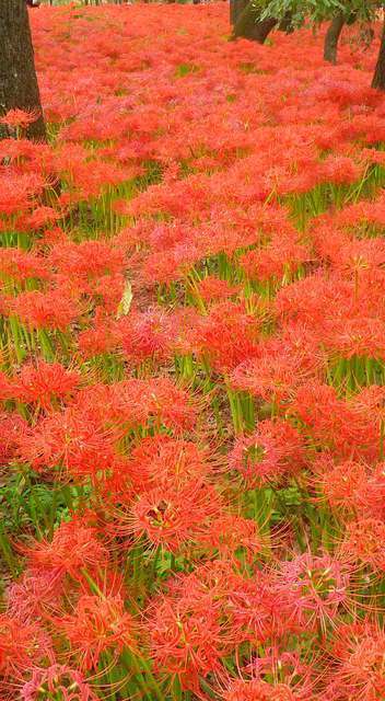 Kinchakuda is famous for a large field of red spider lilies.