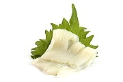 Depending on the type of sashimi, a little bit of wasabi or ground ginger may be added to the sashimi piece. This is most elegantly done by dabbing the wasabi or ginger directly onto the pieces of sashimi (as opposed to mixing it into the soy sauce). Some people also enjoy eating the daikon and shiso garnishes; both vegetables have a fresh, minty taste.